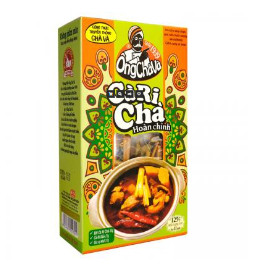 Thành phần: Bột cà ri chà (80gr), cà ri dầu (25gr), gia vị khô: sả, gừng, ớt trái, lá nguyệt quế, lá cà ri (25gr)