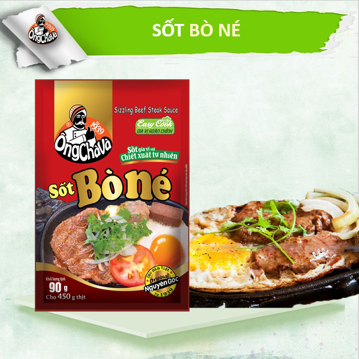- Sốt Bò Né Ông Chà Và 90g là gia vị dùng để ướp thịt bò làm bó né hoặc các món chiên, xào, nướng,… giúp các món ăn trở nên thơm ngon, hấp dẫn và mới lạ.